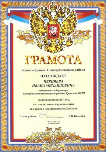 . Грамота администрации - Мои документы - Фотоальбомы - Черняев Иван Михайлович