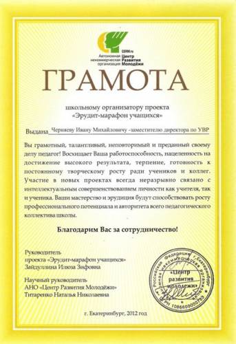 Главная » Фотоальбом » Мои документы » Грамота организатору Эридит марафон